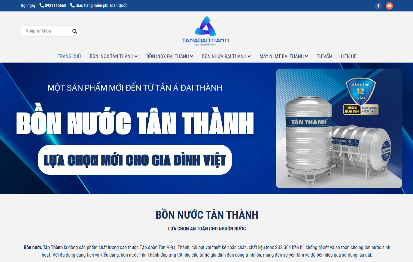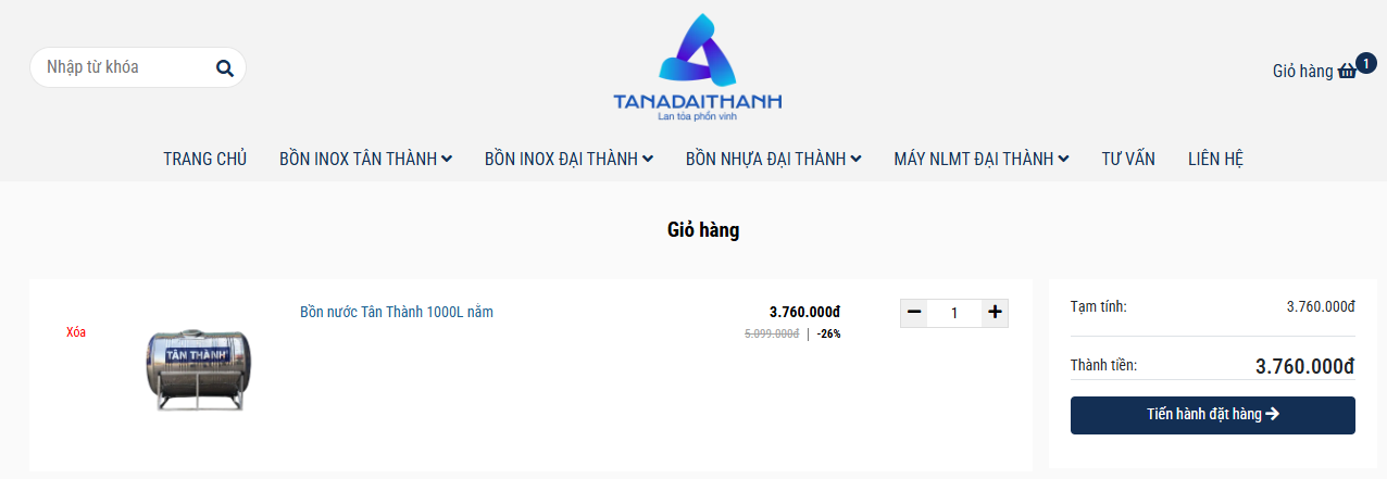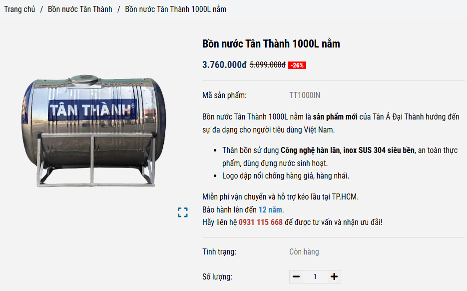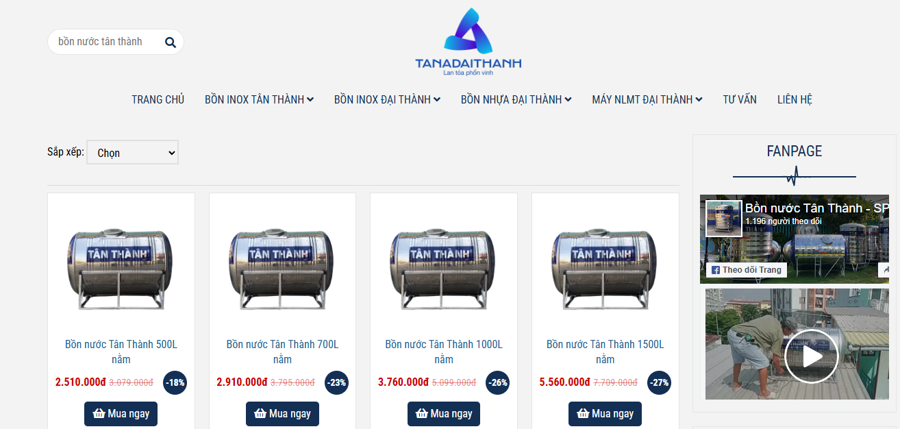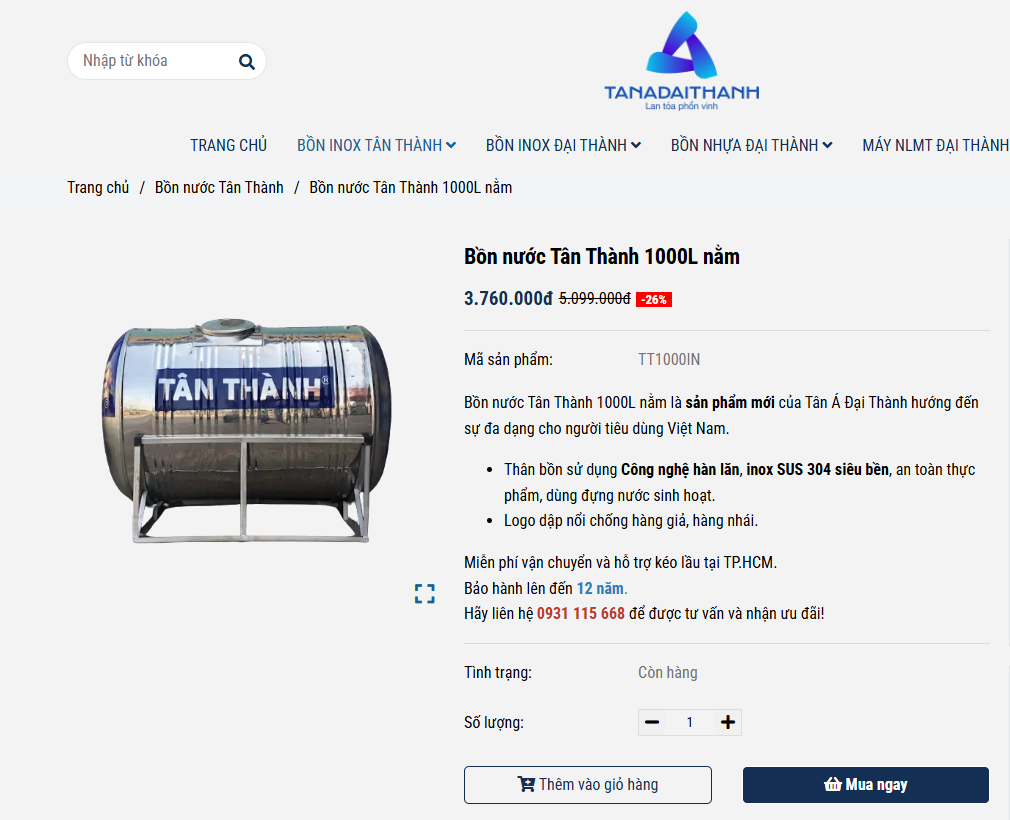 Tìm sản phẩm: Gõ từ khóa “Bồn nước Tân Thành” tại thanh tìm kiếm hoặc truy cập danh mục Bồn nước inox.