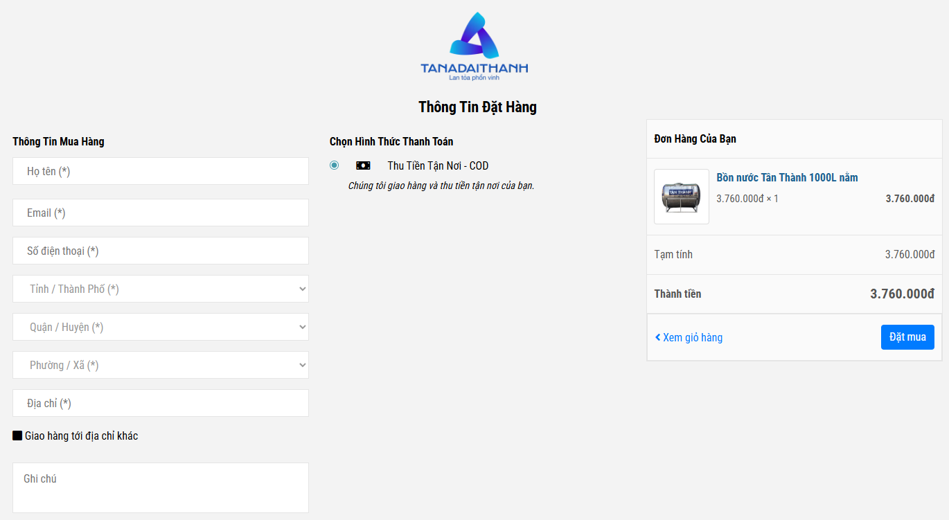 Để giúp Quý khách hàng dễ dàng mua sắm bồn nước Tân Thành trực tuyến, chúng tôi xin gửi đến hướng dẫn chi tiết các bước đặt hàng như sau: